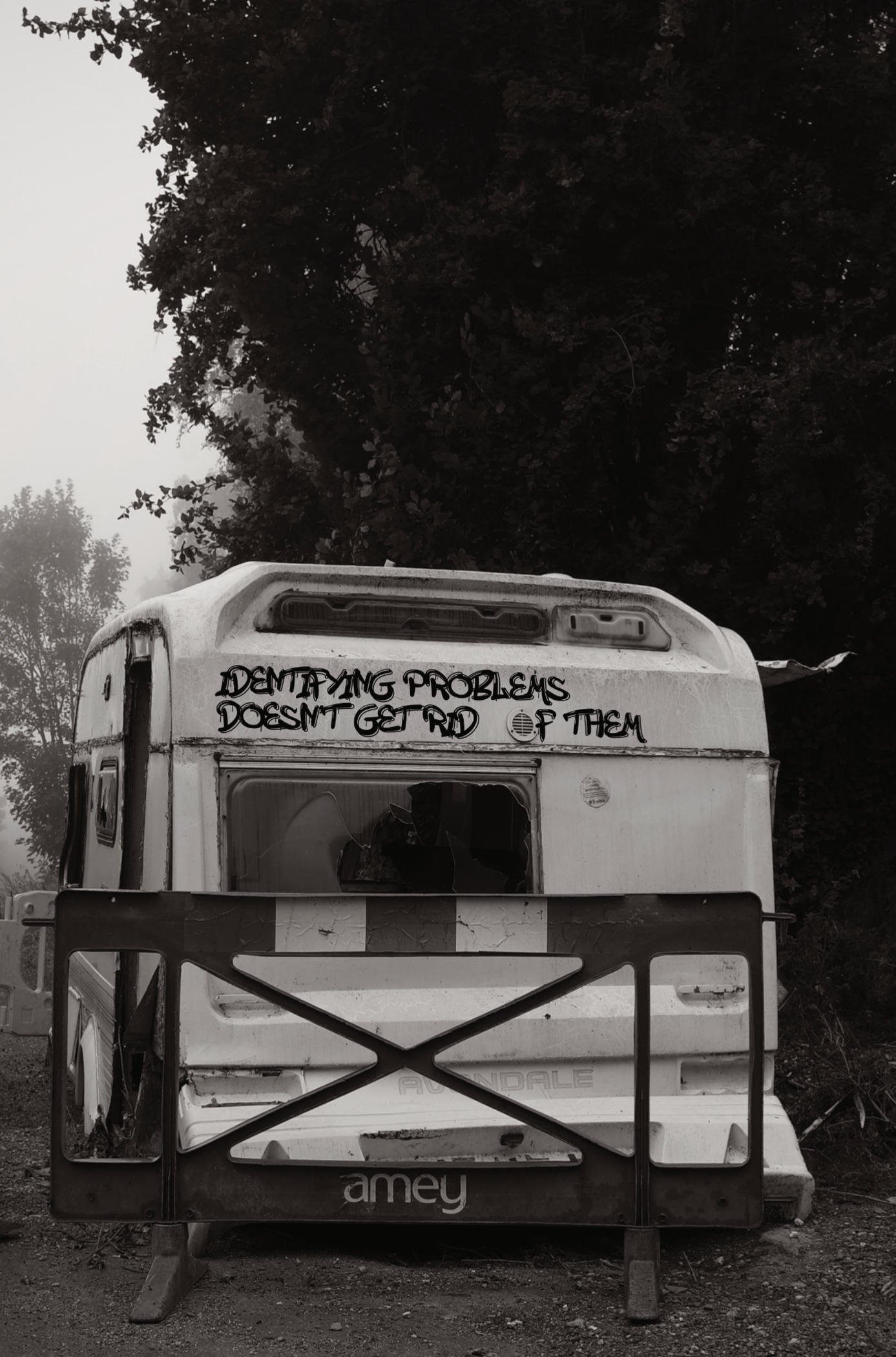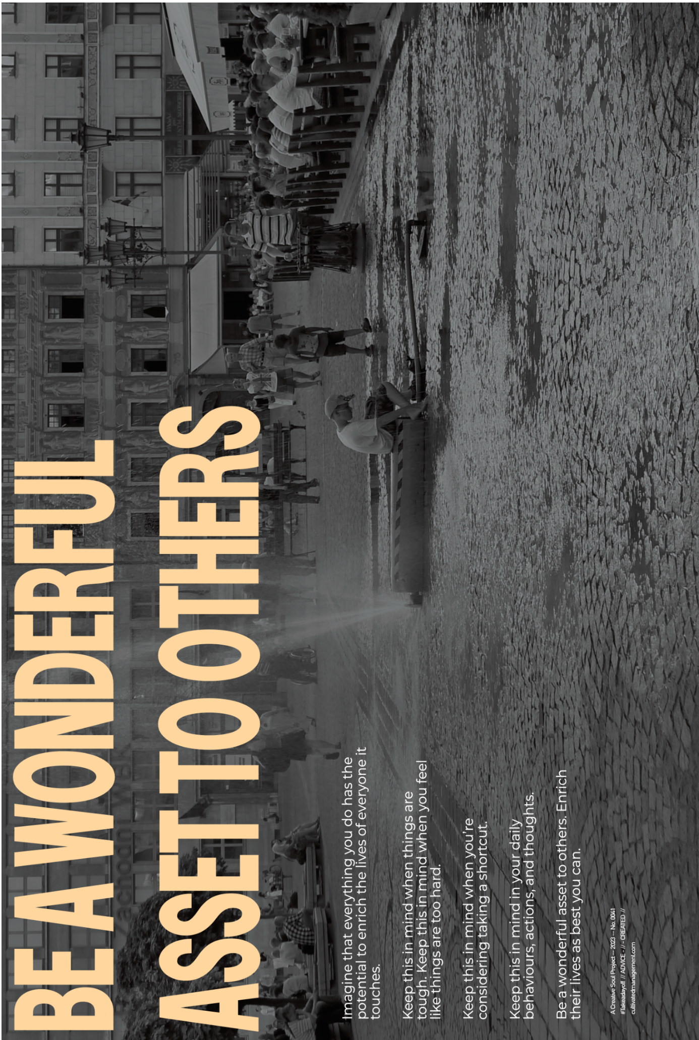 Each chapter is accompanied by two unique posters – one designed, one gritty "urban graffiti" – reflecting the dual nature of our work experiences.