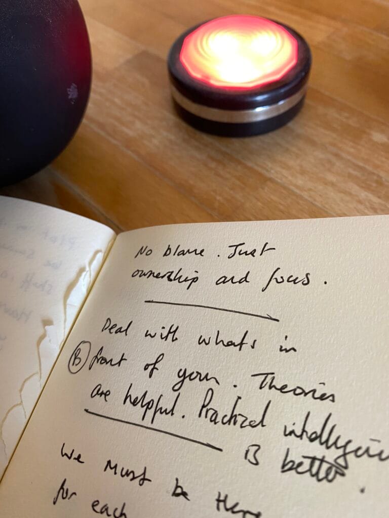 My learning notes and ideas for growth are written into a super posh Ted Baker notebook.