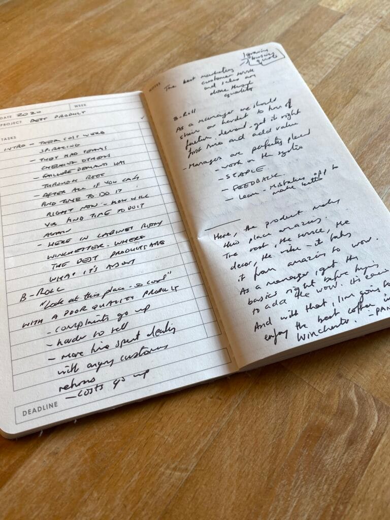 It’s a cool little notebook and its fun trying to condense my video shot lists down on to a single page. It forces creativity.