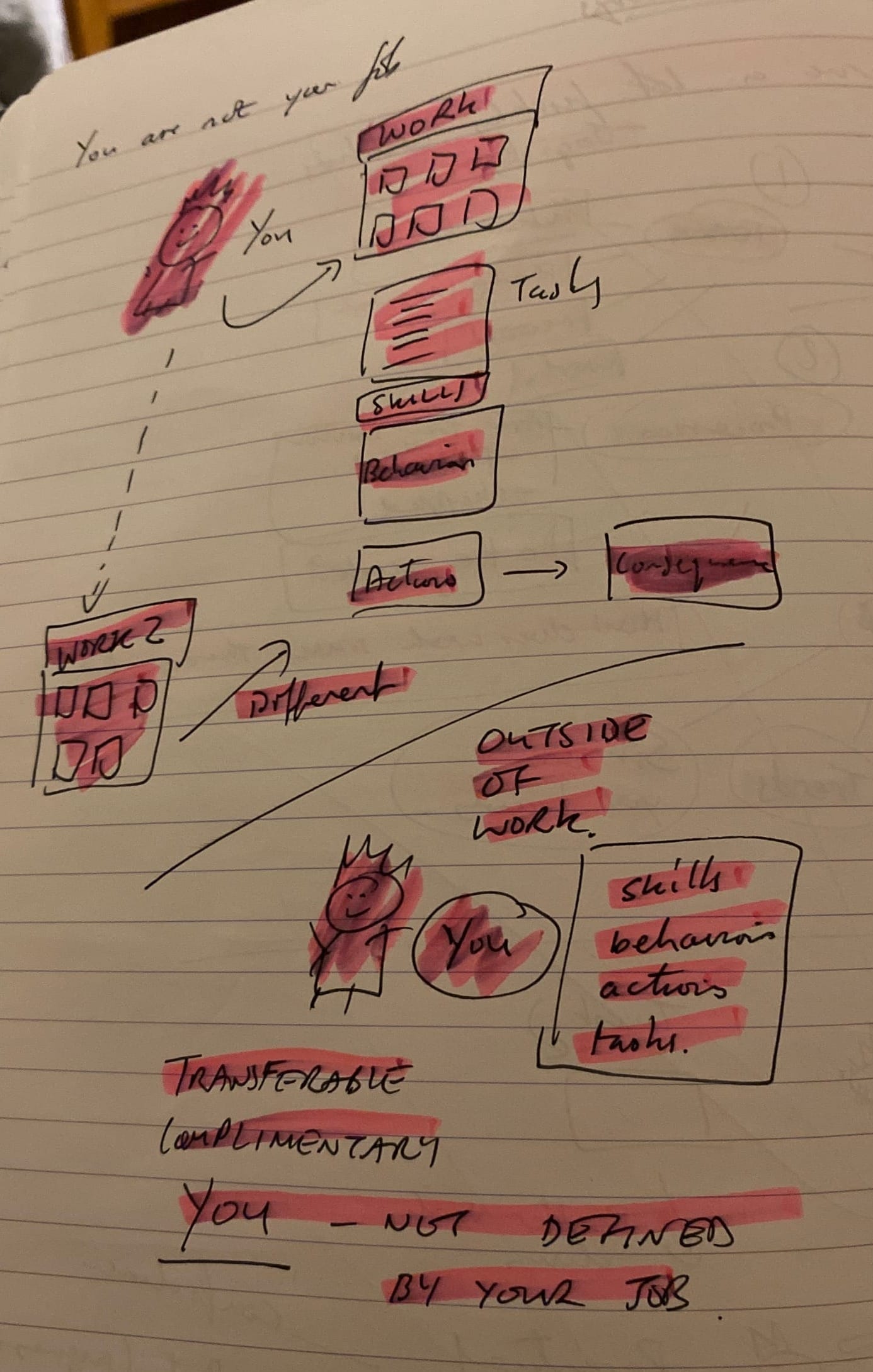 The essence is that we have skills and competencies in work, and we also have them out of work. We are not our job.