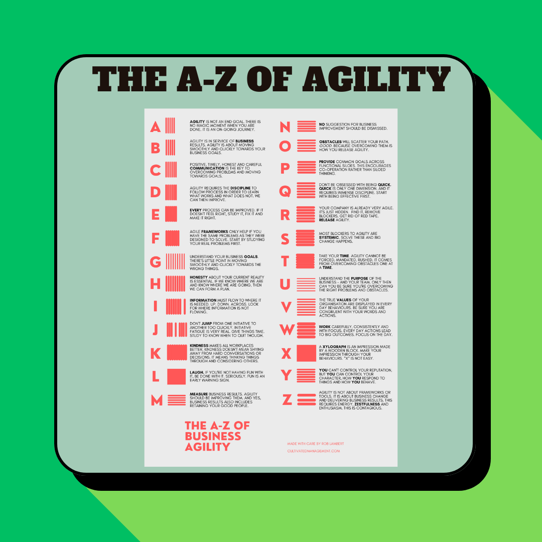 There are plenty of models, theories and cults surrounding "agile" - in this fun poster, and associated article, I share my views on Business Agility and why it's not an end goal to strive for.