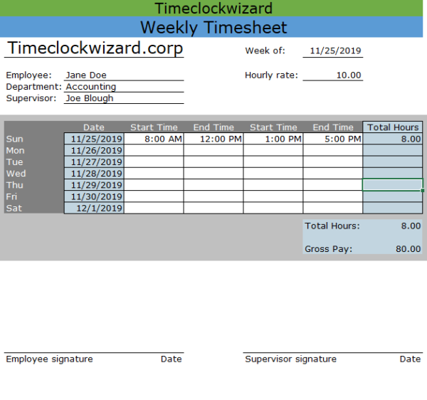 - Sometimes, you’ll need to enter the start and end times of each employee, while other templates simply require the number of hours worked